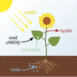 Nejdůležitější endotermickou reakci je fotosyntéza, kdy za dodání sluneční energie z oxidu uhličitého CO2 a vody H2O vzniká fruktóza C6H12O6 a kyslík O2: