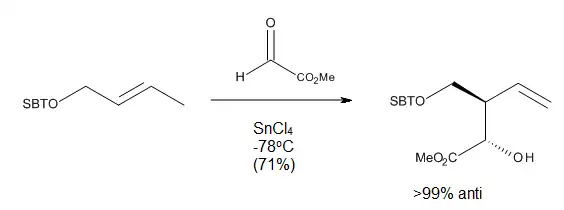 Při řízených karbonyl–enových reakcích byla pozorována vysoká regioselektivita a stereoselektivita po přidání Lewisovy kyseliny, což lze vysvětlit pomocí meziproduktů s židličkovitými či podobnými konformacemi. Některé z těchto reakcí mohou probíhat za velmi nízkých teplot a stále přitom poskytovat velmi dobré výnosy jednoho stereoizomeru.[10]
