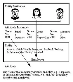 Typem entity nazýváme množinu objektů stejného druhu, charakterizovaných názvem typu a popsaných pomocí jejich vlastností – atributů. Jednotlivé entity nazýváme také výskyty nebo instancemi objektů entitního typu.