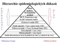Epidemiologické studie mají svou hierarchii. Hyerarchie prací se týká pouze vědeckých studií a vědecky podložených důkazů, nevědecky získaná data nemají do systému přístup.