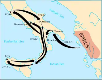Brzy po nástupu na trůn využil Pyrrhos dynastických svárů v Makedonii k získání jejích pohraničních oblastí. Moc Épeiru dále upevnil obsazením pobřežních a okrajových území včetně Akarnánie a ostrova Kerkýra. Takto posílen se Pyrrhos zapojil do války proti svému někdejšímu spojenci a tehdejšímu vládci Makedonie, Démétriu I. Poliorkétovi, přičemž se zmocnil Thesálie a západní poloviny Makedonie a prolomil obležení Athén. V roce 284 př. n. l. byl však zatlačen zpět do Épeiru Démétriovým nástupcem, Lýsimachem. O tři roky později požádalo jihoitalské město Tarent Pyrrha o pomoc proti Římanům. V Itálii a na Sicílii vedl épeirský král po šest let válku s Římany a Kartaginci, avšak jeho výboje, třebaže byly vykoupeny velkými oběťmi („Pyrrhovo vítězství“), neměly dlouhého trvání. Po porážce v bitvě u Beneventa v roce 275 př. n. l. se proto Pyrrhos rozhodl pro návrat do Řecka. Ovšem už rok poté napadl Makedonii a jejího krále Antigona II. Gonata sevřel ve městě Thessaloníké, načež se k němu připojila většina makedonského vojska. Své vítězství však odmítl završit a raději se vypravil na nové tažení na Peloponés proti Spartě. Zanedlouho nato byl ale Pyrrhos obklíčen Makedonci a Sparťany v Argu a v následném boji byl zabit. Po Pyrrhově smrti Épeiros opět poklesl do bezvýznamnosti, když se jeho vládcové zapletli do dlouhodobého konfliktu s Makedonií.