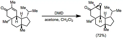 Diastereoselektivní dioxiranová epoxidace chirálního nenasyceného ketonu je součástí syntézy verukosan-2β-olu.[13]
