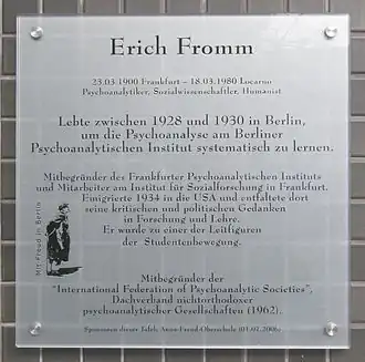 Erich Fromm pocházel z religiózní židovské rodiny a původně se chtěl stát rabínem. Po dvou semestrech práv ve Frankfurtu studoval sociologii v Heidelbergu, kde promoval roku 1922 u Alfreda Webera. Prodělal psychoanalytický výcvik v berlínském psychoanalytickém institutu.[1] Roku 1926 se oženil s psychoanalytičkou Friedou Reichmann a sám se začal Freudově psychoanalýze věnovat; roku 1929 byl již v Berlíně známým psychoanalytikem. V té době manželé Frommovi opustili ortodoxní judaismus.