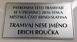 V prosinci 2016 byla po Erichu Roučkovi pojmenována nově dodaná tramvaj Škoda 13T Dopravního podniku města Brna. Stalo se tak na návrh městské části Brno-Slatina.[2]