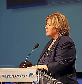 - ↑ a b Budoucí premiérku Norska čekají tvrdá povolební jednání. Železná Erna spolupracuje s populisty. iHNed.cz [online]. 2013-9-10 [cit. 2013-9-13]. Dostupné online.