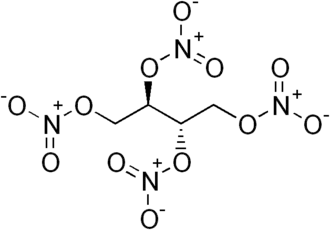- ↑ Erythritol tetranitrate was first synthesized by British chemist John Stenhouse (1809-1880) in 1849. He extracted the simple sugar erythritol (which he called "erythroglucin") from lichen and then studied its chemistry. See: John Stenhouse (1 January 1849) "Examination of the proximate principles of some of the lichens. Part II," Philosophical Transactions of the Royal Society (London), vol. 139, pages 393-401. Reprinted in German as: John von Stenhouse (1849) "Über die näheren Bestandtheile einige Flechten," Justus Liebigs Annalen der Chemie und Pharmacie, vol. 70, no. 2, pages 218-228. Condensed version (in German): John Stenhouse (12 Sept. 1849) "Über die näheren Bestandtheile einige Flechten," Pharmaceutisches Centralblatt, vol. 20, no. 40, pages 625-628.