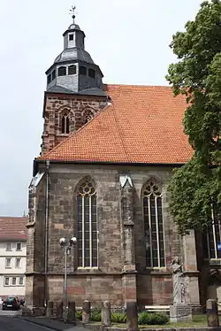 - Tržní kostel sv. Diviše (Marktkirche St. Dionysi) – evangelický chrám; na místě nejstaršího chrámu, založeného již abaytyší Žofií z Gandersheimu (975–1039), bylo postaveno v 15. století toto gotické halové trojlodí; u příležitosti milénia Žofiiny matky, císařovny Theofano, byla u kostela vztyčena socha Theofany.