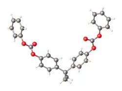 - ↑ a b Serge Perez; Raymond P. Scaringe. Crystalline features of 4,4'-isopropylidenediphenylbis(phenyl carbonate) and conformational analysis of the polycarbonate of 2,2-bis(4-hydroxyphenyl)propane. Macromolecules. 1987, s. 68–77. doi:10.1021/ma00167a014. Bibcode 1987MaMol..20...68P.