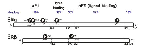 Estrogenní receptory umožňují detekci estrogenu na specifických místech těla obratlovců. V klidovém stavu se nachází obvykle v cytosolu, zatímco po vazbě na ligand (estrogen) se aktivují, dimerizují a vstupují do buněčného jádra. Tam se vážou na sekvence DNA známé jako estrogen responzivní jednotky (ERE). Vazbu ovlivňují i další koregulátory (koaktivátory a korepresory).[3]