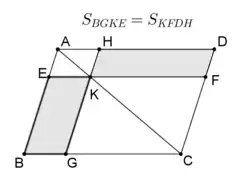 - V každém rovnoběžníku mají doplňky rovnoběžníků nad úhlopříčkou stejný obsah. řešení