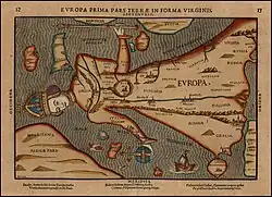 V době evropského středověku byly mapy obvykle orientovány v tzv. T schématu k Jeruzalému, a zachycovaly Evropu, Asii a Afriku.[4] Mapy samotné Evropy byly nanejvýš ojedinělé, jediné známé příklady jsou mapy z Liber Floridus Labmerta ze St.-Omer, vydané v roce 1112, a byzantská mapa ze 14. století. Další eurocentrické mapy byly vydány kartografy Johannesem Putschem (polatinštěně Johannes Bucius Aenicola, 1516–1542)[5] až v roce 1537, tedy na úsvitu raného novověku.[4]