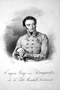 • [1]/ Constantin von Wurzbach: Haugwitz, Eugen Wilhelm Graf. V: Biographisches Lexikon des Kaiserthums Oesterreich. Band 8, Verlag L. C. Zamarski, Wien 1862, S. 66 f.