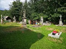 Náhrobky, v popředí novogotický náhrobek rolníka Jakuba Kučery -