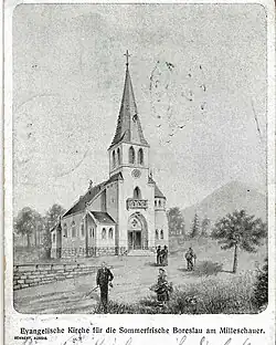 ![]() Evangelický kostel v Bořislavi po roce 1932 | |