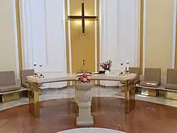 V letech 1973–1975 podle návrhu ing. arch. Josefa Bartáka byla změněna kazatelna a stůl Páně. Klasické lavice byly nahrazeny židlemi spojenými v řadách.[6] Bylo nově vymalováno, vyměněno osvětlení a položena mramorová dlažba.[3]