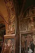 Na poslední stěně presbytáře je kompozice Snímání z kříže, pod východním oknem Kristus Trpitel, následuje Oplakávání Krista, pod jižním oknem postavy dvou svatých biskupů, Ukládání do hrobu a Vzkříšení Krista. Posledním vyobrazením je monumentální výjev Krista s křížem, opět poškozený vedlejším oknem. Na triumfálním oblouku na straně lodi je monumentální Poslední soud s postavou Krista Pantokratora v mandorle. Na východní straně kněžiště je v ostění kruhového okna neobvyklé vyobrazení Nejsvětější Trojice v podobě hlavy se třemi tvářemi. V letech 1976–1977 byl proveden restaurátorský průzkum maleb v ochtinském kostele. V rámci tohoto projektu se podíleli profesor Milan Togner a akad. Mal. Jiří Josefík zavedli pro autora těchto fresek termín Mistr ochtinského oltáře. Je také autorem maleb presbytáře kostela v Koceľovcích, ale tyto fresky jsou hodnoceny jako vyzrálejší, autor opouští linearitu a výrazné kontury, postavy jsou plastičtější a gesta expresivnější.