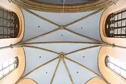 Trojlodní kostel je členěn do dvou pater. Západní stěna lodi se otevírá dveřními portály s půlkruhovými záklenky a kamenným ostěním. Dveřní výplň má historizující kování a kliky.