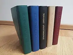 - ↑ Evangelický zpěvník. 1. vyd. Praha: Synodní rada českobratrské církve evangelické, 1979. 918 s. Kapitola Osnova zpěvníku, s. 5–7.