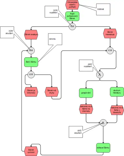 Vždy se tedy setkáme s kombinací Událost a aktivita. Nemohou tedy navazovat dvě události na sebe bez aktivity, která by je spojovala. To samé platí pro aktivity, které také nemohou být za sebou, aniž by je spojovala událost.