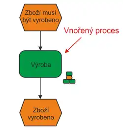 5) Vnořený proces znamená, jak název již napovídá, vnořený proces. Pokud tedy budeme mít toto označení u aktivity, znamená to, že pod aktivitou je ukryt další podproces, který není tak důležitý, aby byl rozepsán v hlavním business procesu, nebo je příliš obsáhlý a tak je tento proces rozepsán jinde. Vnořený proces se využívá hlavně kvůli lepší čitelnosti EPC diagramů. Složitý a dlouhý proces můžeme teda takto rozdělovat a "škatulkovat". Vnořený proces poznáme podle toho, že u aktivity je malá ikonka znázorňující proces. Viz obrázek 4.