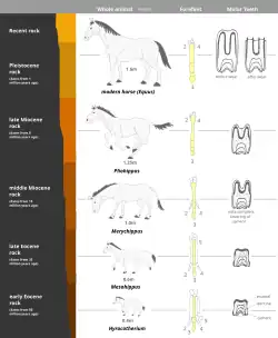 - ↑ a b c Horse Evolution. www.talkorigins.org [online]. [cit. 2025-04-23]. Dostupné online.