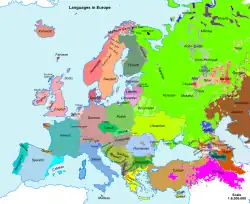 Současná politická a jazyková pestrost Evropy komplikují snahy o její politickou centralizaci, včetně území, které jsou součástí Evropské unie. V Evropě se mluví 218 jazyky[3] z nejméně 6 jazykových rodin (indoevropská, uralská, altajská, afroasijská, severokavkazská a baskičtina); naprostá většina mluvčích však připadá na jazyky indoevropské. Jednotlivé státy jsou obvykle založeny na národních základech.