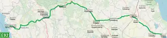 Mezinárodní silnice E92 je evropská silnice, která vede napříč Řeckem od jónského k egejskému pobřeží. Je dlouhá 350 km, přičemž značnou část trasy sdílí se silnicí E90 vedenou po dálnici A2. Zbytek je veden převážně po rychlostní silnici EO6.