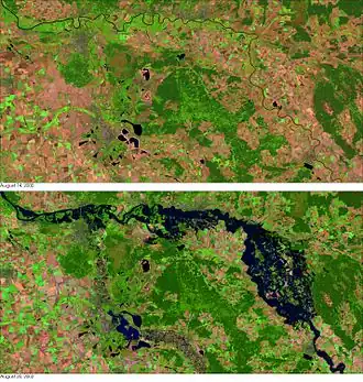 V srpnu 2002 způsobily silné dlouhotrvající deště vzestup hladin řek Vltavy, Labe, Dunaje a dalších jejich přítoků. Toto vzedmutí dosáhlo úrovně stoleté vody. Povodeň způsobila smrt desítek lidí a škody v řádech miliard eur. Postihla území Česka, Chorvatska, Maďarska, Německa, Polska, Rakouska, Rumunska.