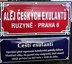 - ↑ ŠTĚŘÍKOVÁ, Edita. Stručně o pobělohorských exulantech. 1. vyd. vyd. Praha: Kalich, 2005. 143 s. ISBN 80-7017-022-0.