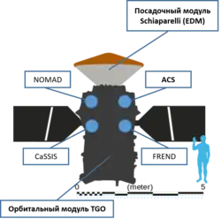 ESA poskytla pro první misi orbiter a demonstrativní přistávací modul Schiaparelli a Roskosmos zajistil vypuštění do vesmíru pomocí nosné rakety Proton M a dva přístroje do orbiteru. Mise dorazila k Marsu v říjnu 2016.
