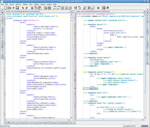 - Druhý soubor obsahuje vzorec pro transformaci a musí být napsán v jazyce XSL.