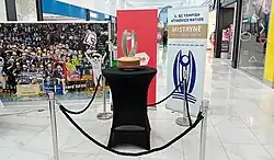 Pohár se skládá z javorového stojanu, tří lesklých duralových listů, které jsou pozlaceny, postříbřeny a poměděny. Kolem listů je šest okvětních závojů z leštěného tepaného duralu. Autorem poháru je David Lomos. Pohár symbolizuje květinu (podle toho také jeho jméno), do níž má vítězný tým právo vložit průhlednou kouli se svým jménem (symbolizuje plod). Zatímco samotná trofej je putovní, průhledná koule vítězi zůstává.[27][28] Trofej je vysoká 53 cm a těžká 6,5 kg.[29]