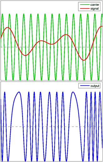 Předpokládejme, že modulační signál má frekvenci a fázi . Lze ho tedy popsat rovnicí: