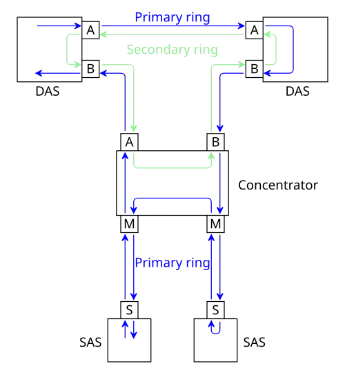 FDDI trunk ring sestává ze dvou smyček: primární a sekundární. Dual Attachement Stations jsou připojeny k oběma smyčkám, Single Attachement Stations se připojují pomocí koncentrátoru.