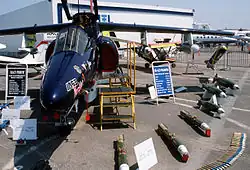 Jedná se o celokovový dvoumístný jednomotorový proudový hornoplošníkpříďovým podvozkem. Jeho křídlo má superkritický profil.[6] Dvojčlenná posádky (pilot, instruktor) sedí v přetlakové kabině s tandemovým uspořádáním na dvojici vystřelovacích sedaček UPC S-III-S3IA63. Kokpit je vybaven průhledovým displejem a dvěma multifunkčními displeji. Výzbroj tvoří 30mm kanón DEFA a až 1900 kg výzbroje nesené na pěti závěsnících (čtyři podkřídelní a jeden podtrupový. Pod křídlo lze alternativně podvěsit dvě přídavné nádrže.[1]