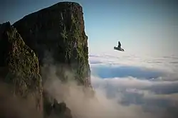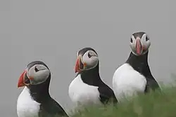 Ptačí fauně Faerských ostrovů dominují mořští ptáci a ptáci přitahovaní otevřenou krajinou, například vřesem, pravděpodobně kvůli nedostatku lesů a jiných vhodných stanovišť. U mnoha druhů se vyvinuly speciální faerské poddruhy, jako je např. kajka mořská, špaček obecný,[42] střízlík obecný[43] a alkoun obecný.[44][45] Faerským endemitem byla barevná morfa krkavce velkého, ale nyní již vyhynula; celočerná forma je na souostroví stále poměrně rozšířená.