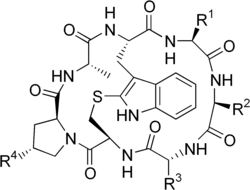 Po chemické stránce jsou všechny tvořeny sedmi aminokyselinami, vytvářejícími uzavřený cyklický skelet, přemostěný sulfidovou vazbou. Tato struktura způsobuje mimořádnou odolnost této peptidické molekuly zejména vůči teplu (rozkládají se až při teplotách nad 250 °C). Také jsou odolné vůči kyselinám a středně odolávají i trávicím enzymům, ale méně, než podobné amatoxiny. Jsou rozpustné ve vodě, metanolu a etanolu.