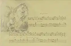 Rukopis části April (Duben) z cyklu Das Jahr Fanny Henselové opatřený ilustrací Wilhelmem Henselem