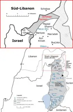 - ↑ MRAD, Toni. Shebaa Farms: The disputed land at the crossroads of Lebanon, Syria, and Israel. www.lbcgroup.tv [online]. Lebanese Broadcasting Corporation International, 2024-12-28 [cit. 2025-01-10]. Dostupné online. (anglicky)