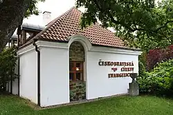 Součástí sborové zahrady je také kulturní památka Altán Gloriet s terasami nad Labem.