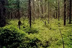 Viditelná absence křovinného patra, smíšená část lesa