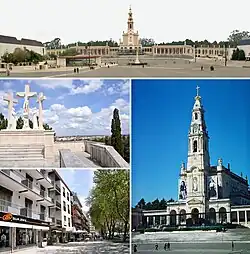 Fatima má asi 13 000 obyvatel. Leží v okrese Santarém ve středním Portugalsku,187 km jižně od města Porto a 123 km severně od Lisabonu. Fatima přitahuje věřící z celého světa.[1] Stala se známým poutním místem po tom, co se tu v roce 1917 třem malým dětem-pastýřům údajně zjevila Panna Maria. K prvnímu zjevení došlo během první světové války 13. května 1917, když sourozenci Francisco a Jacinta Marto spolu s Lúcií Santos pásli dobytek v Cova da Iria, kde jejich rodiče vlastnili pastviny.[2] Cova da Iria vytváří přirozený amfiteátr s průměrem přibližně 500 m.