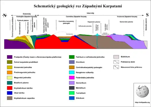 - ↑ Maheľ, M., 1982. Príkrovy a členitosť kôry Západných Karpát. Mineralia Slovaca, 14, s. 1–40