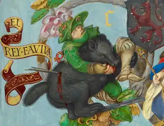 ![]() Řezba znázorňující Favilovy poslední dny na portálu kláštera San Pedro de Villanueva z 12. století | |