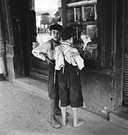 Alšovo nábřeží, kluci hrají kuličky, 50. léta 20., stol.