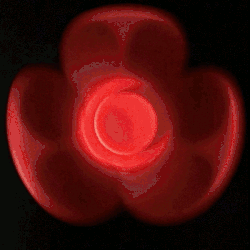 - anebo frekvenci ponechat stálou, obrazy ozářených terčíků se pak ale pod záblesky budou pohybovat, ba dokonce i měnit směr svého pohybu: jednak vlivem zpomalování spinneru, jednak vlivem vzorkovacího teorému, tedy se projeví stroboskopický jev. (viz obrázek výše)