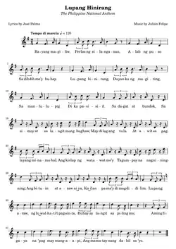 Skladba byla původně napsána jako scénická hudba, a proto neměla slova, když byla přijata jako státní hymna, a následně zahrána při prohlášeni filipínské suverenity 12. června 1898. Při americké okupaci Filipín koloniální vláda úředně hraní písně zakázala schválením Zákona o vlajce. Zákon byl odvolán v roce 1919 a potom byla píseň přeložená do angličtiny a oficiálně pojmenována „The Philippine Hymn“ (česky Filipínská hymna).