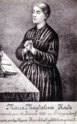 Filipov byl původně bezvýznamnou vesničkou, ležící těsně při státní hranici se Saskem. Zde žila mladá tkadlena Magdalena Kadeová (5. června 1835 Filipov[4] – 10. prosince 1905 tamtéž[5]), která byla od svých 19 let těžce nemocná. Byl jí tehdejšími metodami diagnostikován zápal plic a pohrudnice, zánět mozkových blan, k nimž se přidala častá křečová onemocnění spojená s těžkými křečovými záchvaty. Během deseti let se její zdravotní stav zhoršil natolik, že od podzimu 1864 byla trvale připoutána na lůžko. Na počátku roku 1865 se objevily silné bolesti na prsou a velké hnisavé puchýře, které se brzy rozšířily po celém těle a vytvořily velké vředy. Ošetřující lékaři Görlich z Gersdorfu a Ulbrich z Jiříkova konstatovali, že stav nemocné je nevyléčitelný.[6]