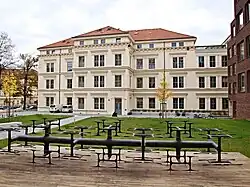 ![]() Průčelí a hlavní vstup do areálu FF MU | |