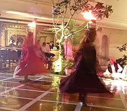 Obyvatelé Thárské pouště v Indii předvádějí tradiční tance s ohněm jako součást festivalu jara. Tento tanec je doprovázen hrou na bubny a na behr a má mnoho druhů. Muži například často předvádějí tanec, při němž chodí po žhavých uhlících. Před jeho začátkem se zapálí velká hranice, která se posléze nechá vyhasnout, aby po ní zbyly žhavé uhlíky, jež tanečníci vyhazují nohama a vytváří tak spršky ohně.[3] Ženy provádějí tanec, při kterém na svých hlavách udržují zapálené kotlíky. Oba typy jsou dnes také často předváděny pro turisty.